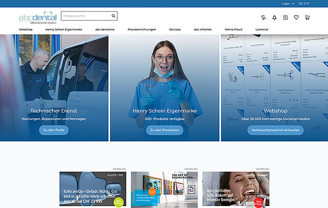 Abschließend, und zeitgleich mit der Umsetzung des Cockpits, sollten wir Webshop und Website auf eine Plattform zusammenführen und neue Marketing-Features einbauen. Ziele waren die Erhöhung des durchschnittlichen Warenkorbwerts sowie die Schaffung einer einzigen Plattform, in der Dentaldienstleister alle Änderungen durchführen können.