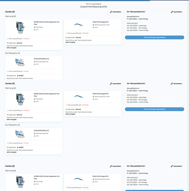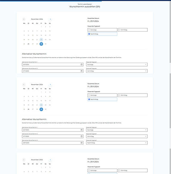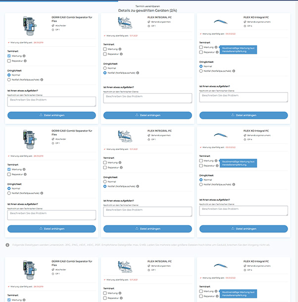 Eine unkomplizierte Online-Terminanfrage für reguläre Wartungs- und Reparaturtermine. Liegt ein Problem an einem der Geräte vor, ist ein Text- sowie ein Upload-Feld integriert, damit das Problem näher beschrieben werden kann. - Digitale Dokumentation
