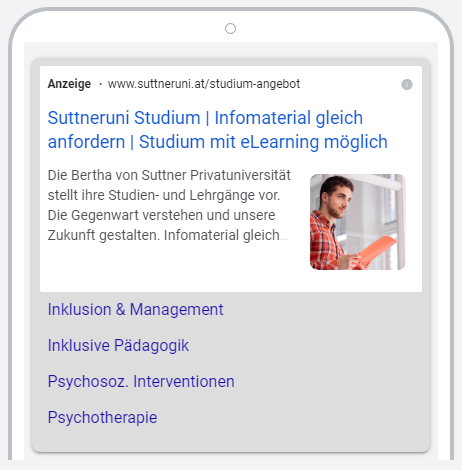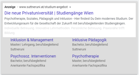 Durch die enge und transparente Zusammenarbeit übertraf die Kampagne die Erwartungen unserer Auftraggeberin. Wir unterstützten das schnelle Wachstum mit flexibel aufgesetzten Kampagnen für neue Studiengänge und trugen so zum Erfolg bei.