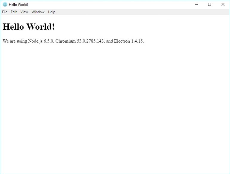 Mit dem letzten Befehl („npm start“) wird „electron .“ ausgeführt und die erste Electron App startet: