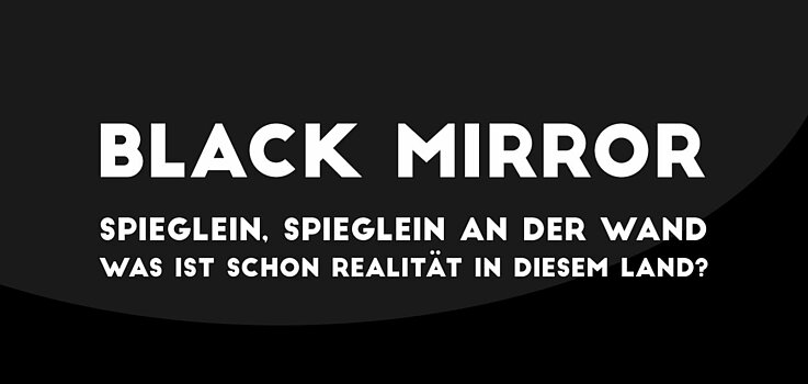 Wikipedia: „Black Mirror ist eine britische Science-Fiction-Serie von Charlie Brooker, die verschiedenartige Auswirkungen der Verwendung von Technik und Medien auf die Gesellschaft thematisiert.“