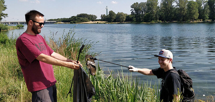 Müllsammeln an der Donau in Wien und Linz