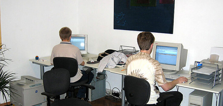 Für die Historiker: Die Bilder sind zeitlich nicht ganz korrekt. Bilder von 2002 sind eher rar und unser Büro sah damals so aus (kein Scherz, ist eine Originalaufnahme):
