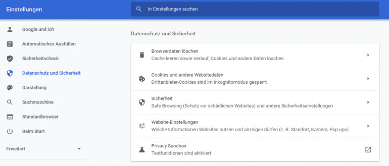Unter “Einstellungen” können Sie beispielsweise die Suchaktivitäten deaktivieren oder die Aktivitätseinstellungen anpassen, wenn Sie in einem Google Konto angemeldet sind. So können Sie manuell selbst entscheiden, welche Daten erfasst werden und welche Sie ausschließen möchten.