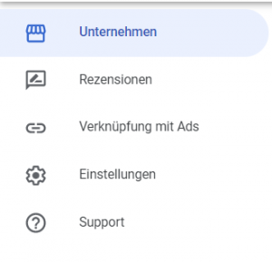 Auf der linken Seite in Ihrem Unternehmensprofil sehen Sie mehrere Menüpunkte. Hier können Sie ganz einfach alle Informationen verwalten und auf weitere Features zugreifen.
