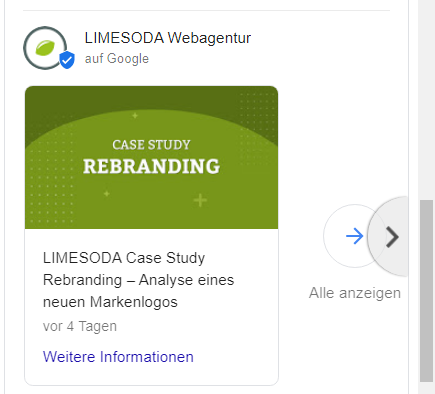 Es ist wie eine Art kurzer Steckbrief über Ihr Unternehmen, in dem die wichtigsten Informationen auf den ersten Blick ersichtlich sind. Sie können selbst verwalten, wie Ihre Website angezeigt wird und Ihr Unternehmen präsentiert wird.