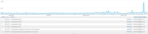 Um für Ihren Webauftritt relevante Ereignisse auch im Nachhinein nachvollziehbar protokolliert zu haben (und sich so den ein oder anderen auf den ersten Blick überraschenden Sprung in den Zahlen erklären zu können), bietet Google Analytics die Verwendung von Vermerken an.