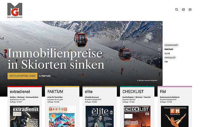 Die MG Mediengruppe mit Sitz in Wien ist ein etabliertes Medienunternehmen, das verschiedene Fachmagazine publiziert. Zum Start unseres gemeinsamen Projekts stand die Gruppe vor einer Herausforderung, eine einheitliche digitale Plattform für die Dachmarke und alle Magazine der Gruppe zu schaffen.