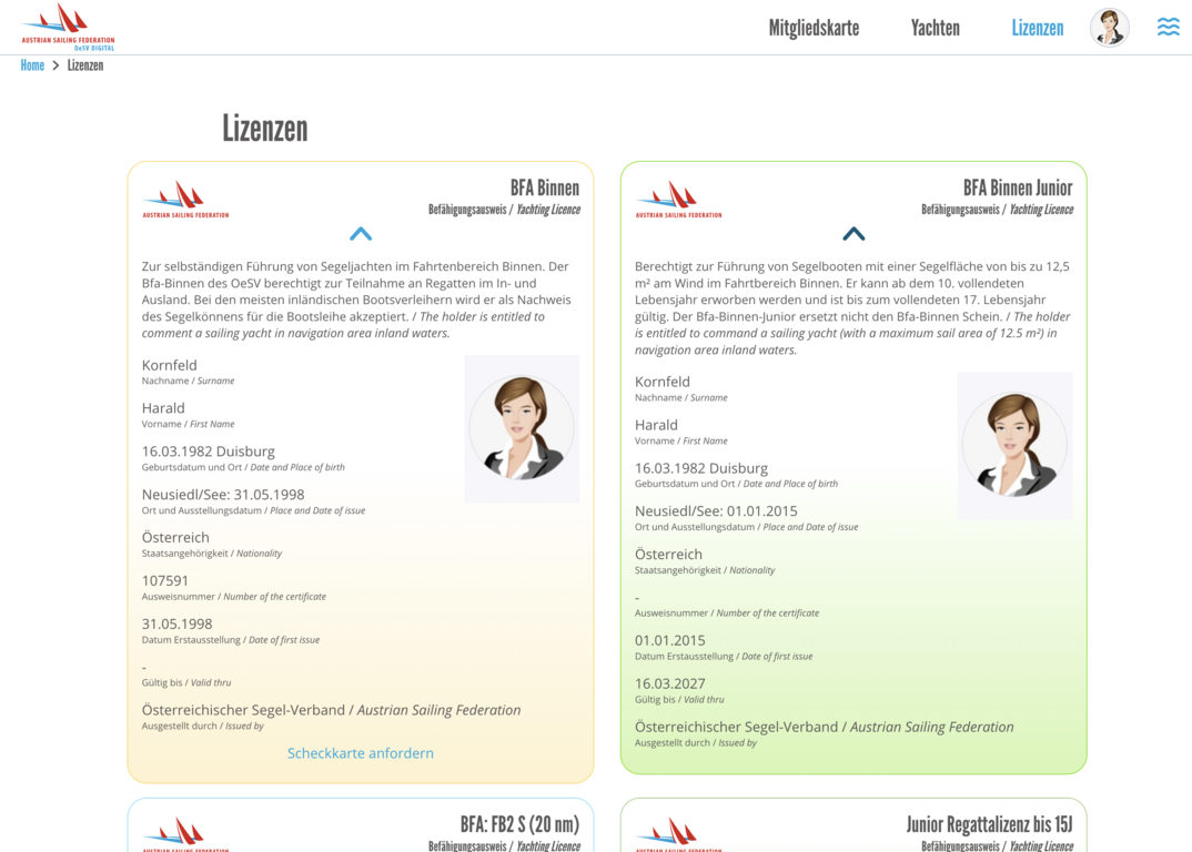 Mit der Digitalisierung werden auch die zahlreichen Lizenzen strukturierter geordnet. Immerhin werden vom OeSV Service-Office derzeit rund 190.000 Lizenzen verwaltet. Dazu zählen etwa Befähigungsausweise, Zertifikate, Kursbestätigungen oder Nachweise anderer Kompetenzen wie Trainerausbildungen. Solche Lizenzen bilden oftmals in Kombinationen die Grundlage für Segelführerscheine oder für Trainer-Lizenzen. Personenzugeordnete Lizenzen werden den Inhabenden nun in ihrer OeSVDigital-Oberfläche dargestellt. Mitgliedsvereine und Veranstaltungsorganisatoren erhalten Zugriff auf Teile des Lizenz-Systems.