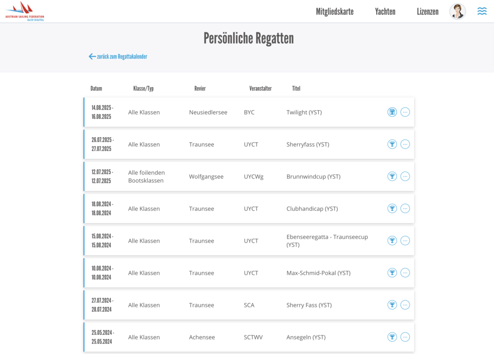 Im digitalen OeSV-Profil werden hinterlegte Kontaktdaten, das persönliches Profilbild und weitere Daten dargestellt und teilweise zur Bearbeitung freigeschaltet. Alle eingetragenen Yachten samt ihren hinterlegten Stammdaten finden sich im digitalen Yacht-Register wieder.