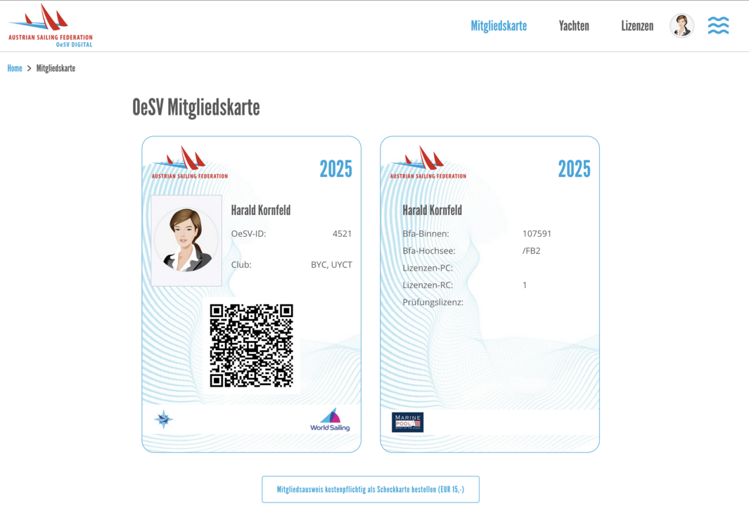 Bereitstellung von Service-Leistungen für Mitglieder in Form einer Web-App. Die als Progressive Web App (PWA) ausgeführte Anwendung zeigt den digitalen Mitgliedsausweis, die Vereinszugehörigkeit und die Führerscheinlizenzen der Inhaber. Auch der Regattakalender für alle Regatten österreichischer Yachtclubs werden angezeigt. Die Verwendung der App steht Mitgliedern frei, niemand wird zum Umstieg gezwungen.