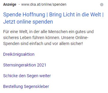Mit Suchmaschinenmarketing inkl. Display-Kampagnen (SEA) wurde zusätzlich versucht, Awareness für die Spendenaktion zu generieren. Das gesamte “Google-Tools-Paket” der Marketing Suite diente dafür natürlich als Unterstützung. Der katholischen Jungschar als Non-Profit-Organisation hilfreich zur Seite stehen zu können, mittels der Hilfe von Google Grants, freute uns sehr. LIMESODA hat hierzu schon Erfahrung und hilft NPOs bei der Erstellung und Qualifizierung für das Programm.
