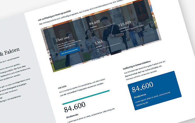 Die Einhaltung des Barrierefreiheitsstandards WCAG 2.1 Level AA war ein hoher Anspruch. Dafür adaptierten wirt auch das Corporate Design der Universität, beispielsweise den Blauton. So erreichten wir den nötigen Kontrast für alle Schriftgrößen. Für die Bilddarstellung nutzten wir datensparsame webP-Formate und Lazy Loading. Das sorgte für optimale Ladezeiten. Wir implementierten eine 2-Klick-Lösung für Videos. Das gewährleistet die DSGVO-konforme Integration von Streaming-Plattformen.