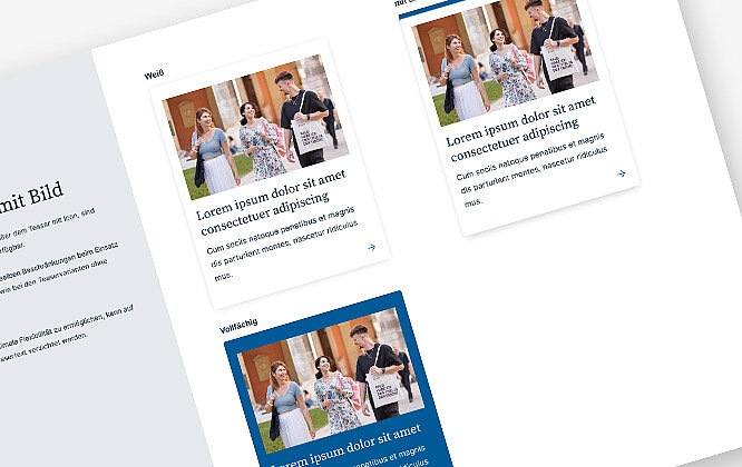 In der Konzept- & Designphase erarbeiteten wir in zweiwöchigen Sprints den Look & Feel und alle neuen Content-Elemente. Unser Fokus lag auf Emotion und der Priorisierung der Zielgruppen. Die Universität testete die ausgearbeiteten Prototypen in Anwendertests mit User:innen. So stellten wir die ideale Blickführung sicher. Wir entwickelten einen Living-Styleguide in Figma. Dieser wurde zum zentralen, digitalen Markenhandbuch für die Redakteur:innen.