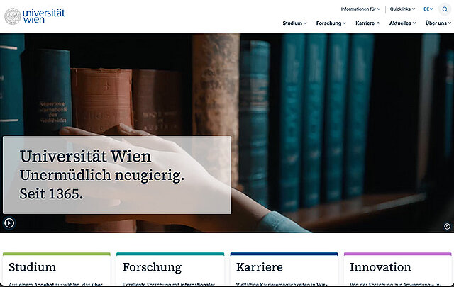 Wir lieben und suchen die Herausforderung. Mit der Universität Wien beauftragte uns eine der größten und renommiertesten Bildungseinrichtungen Europas mit einem digitalen Kraftakt. Es ging um die Erneuerung der gesamten Webpräsenz. Nach dem Relaunch des Universitätsportals folgt die Ausrollung des neuen Webauftritts auf die rund 1.400 assoziierten Webseiten.
