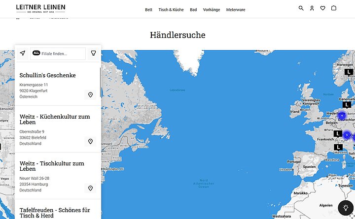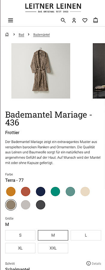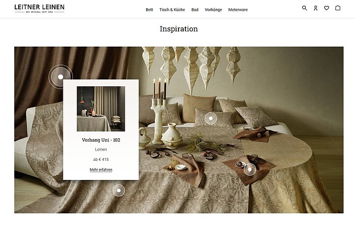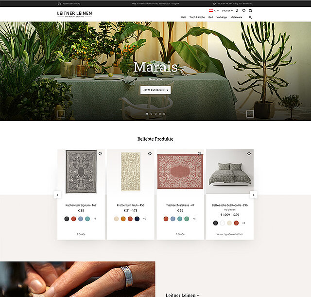 Von Vorhängen über Bademäntel bis hin zu Bettwäsche: Leitner Leinen bietet eine breite Auswahl an Textilprodukten zur Verfügung. Durch die Kombination aus verschiedenen Materialien, Farben, Mustern und Größen entsteht ein Katalog mit über 70.000 einzigartigen Produktvariationen. Diese komplexe Produktauswahl galt es, den Kund:innen von Leitner Leinen in einem Onlineshop zur Verfügung zu stellen.